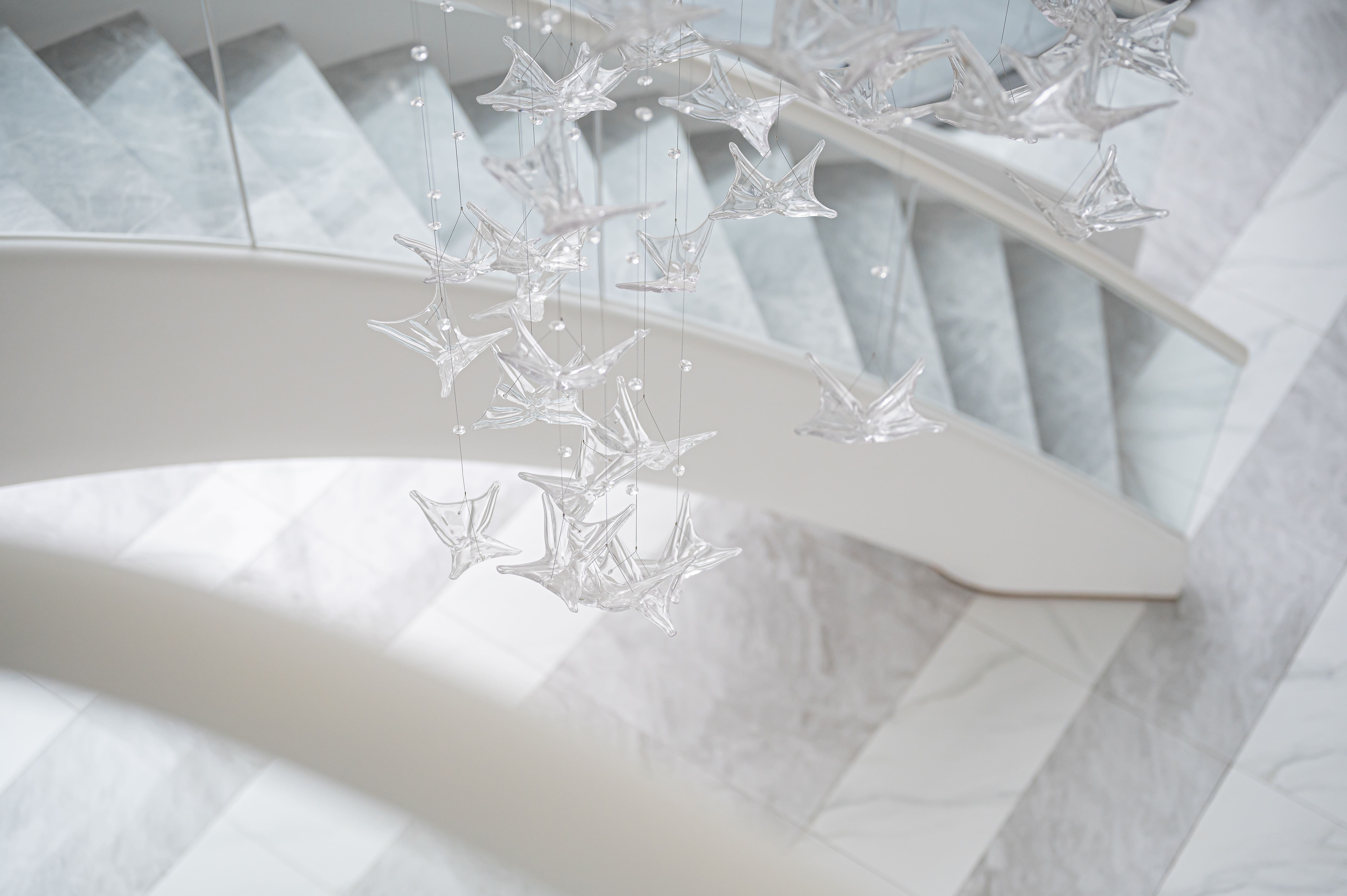 大面積透光玻璃的自然採光搭配形色燈光打造出充滿魔幻魅力的光影大廳,